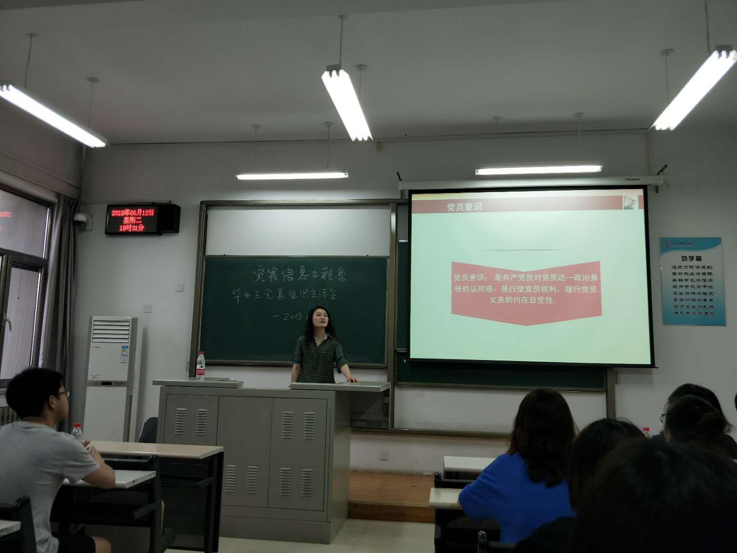 为确保毕业生党员持续保持党员意识,增强党性和组织观念,毕业之后在工作岗位和学习深造阶段永葆共产党员的模范带动作用, 2018年6月12日下午,灾害信息工程系党总支组织召开 2018届全体毕业生党员组织生活会。
