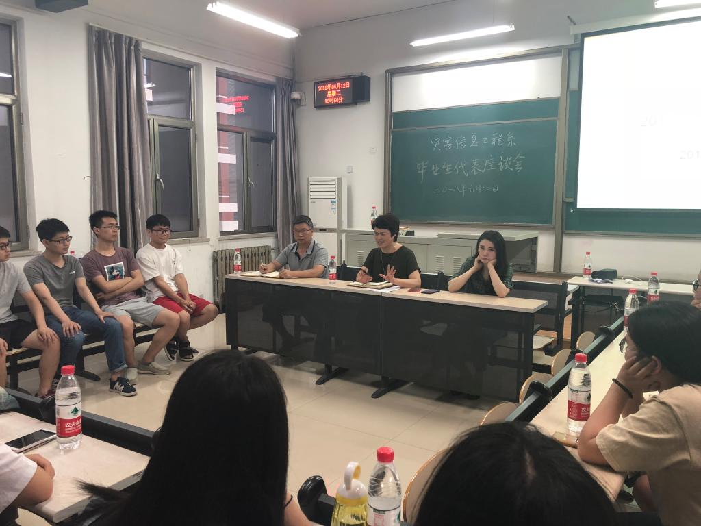 6月12日下午,灾害信息工程系在北校区长庚楼337召开毕业生代表座谈会。系党总支书记王爱玲、系副主任高方平、辅导员李翠婷和部分毕业生代表出席座谈会。