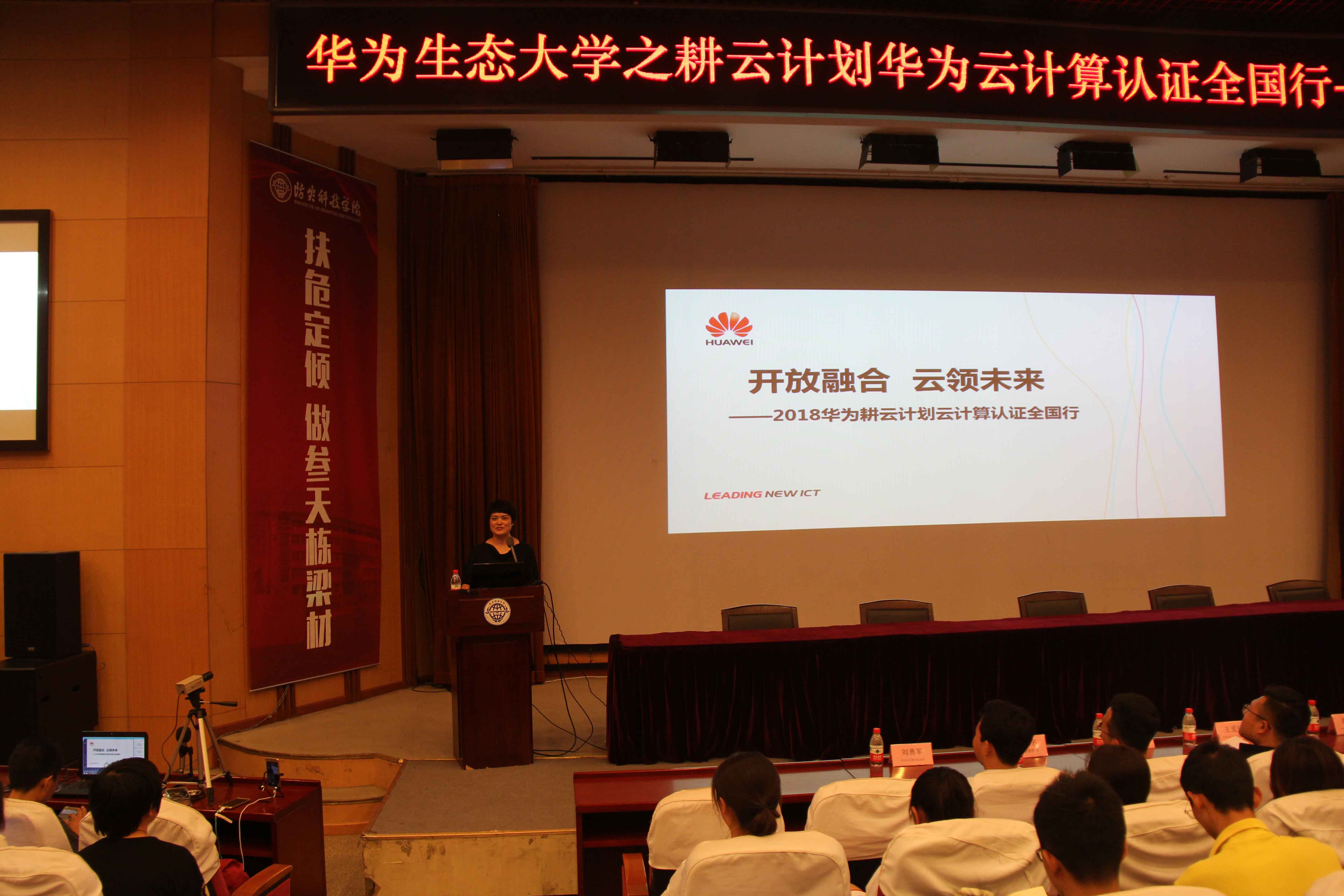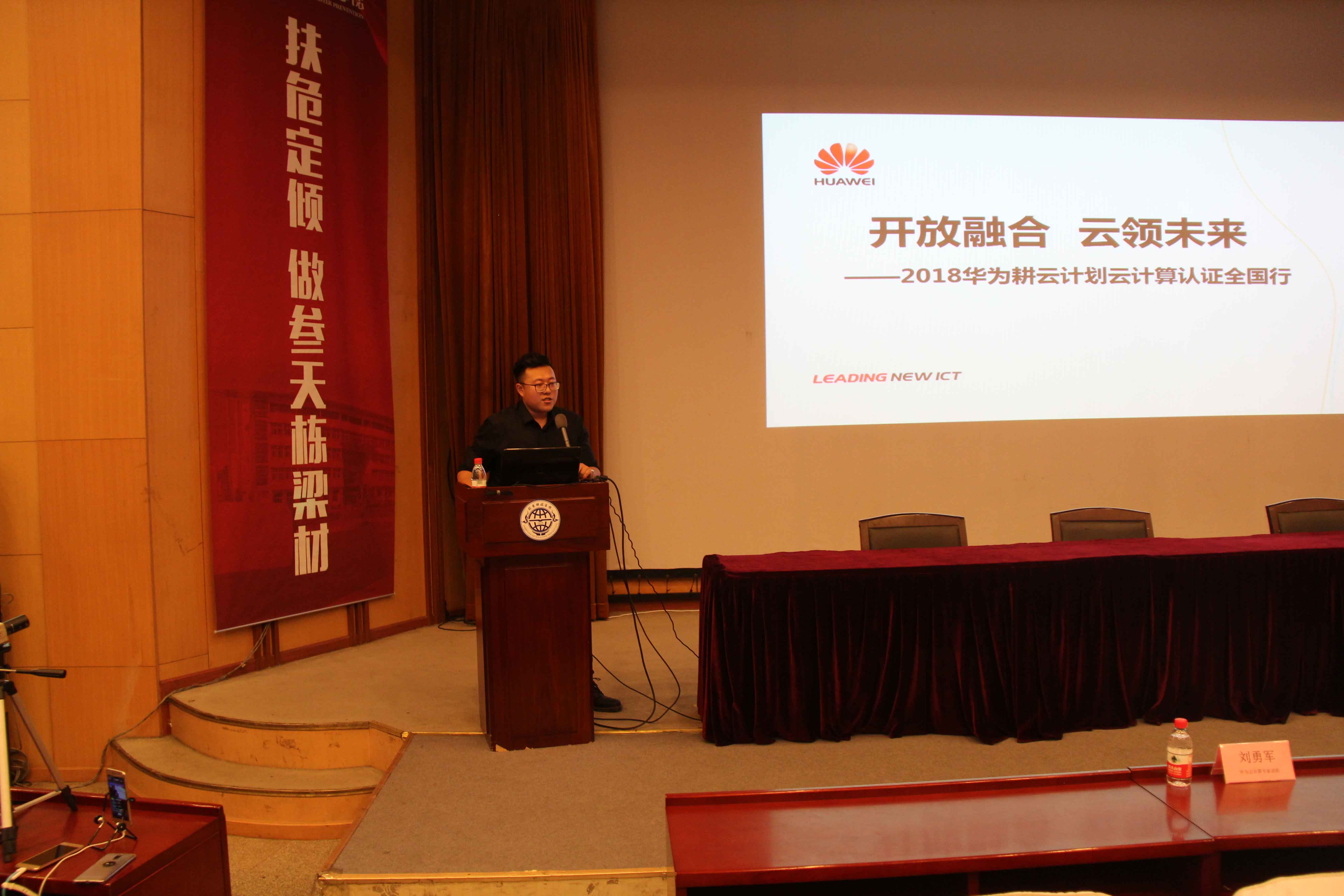 6月21日,由华为公司主办、公司和人通科技公司承办的华为生态大学“耕云计划”云计算认证全国行—燕郊站在公司成功举行。参加本次活动的嘉宾领导有灾害信息工程系党总支书记王爱玲、华为公司河北区服务经理李梓正和姜峰宇、华为云计算认证讲师刘勇军,我系400余名员工和部分教师参加了此次活动。