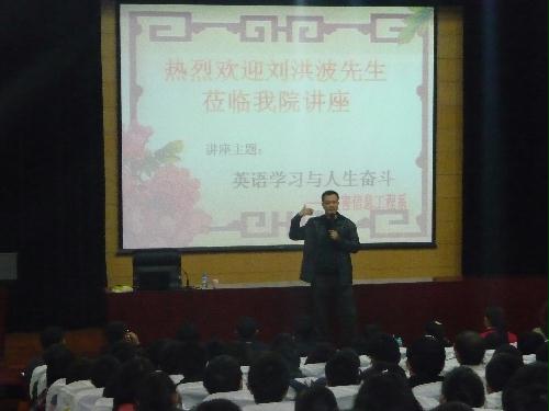 2010年11月5日晚,灾害信息工程系邀请中国雅思教父、北京雅思公司董事长、雅思阅读首席主讲、新托福阅读首席主讲刘洪波老师,为全院师生作了一场精彩的主题为 “英语学习与人生奋斗”的专题讲座。本次讲座在图书馆报告厅举行,吸引了全院众多师生前去参加。