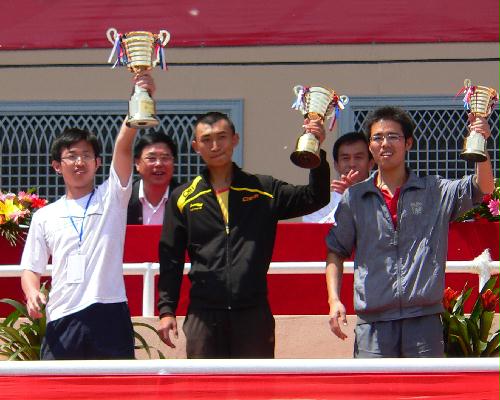 在这次校运会中,0950412班王存义同学再次以顽强的意志勇夺男子10000米冠军。团体项目中,我系1050411、0960422班包 揽了20人21条腿的冠亚军。在新铁人三项比赛项目中,也夺得了第一名和第三名的好成绩。这些无一不体现了我系员工团结向上、乐观进取的精神风貌。