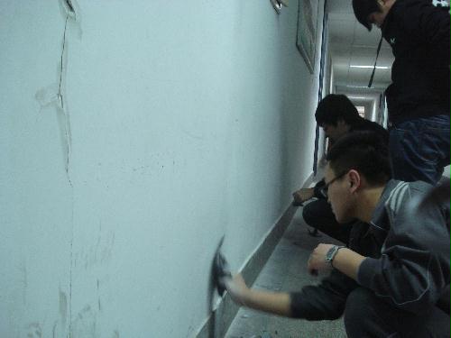 2012322日下午,我系党员、预备党员以及积极分子在员工科党支部的组织下,开展了学习雷锋精神、小事从我做起的清理卫生活动。下午两点,全员在1号楼前被分成五组各自打扫指定的区域。同学们团结协作,认真打扫墙壁、擦洗门窗,最终将教学1号楼打扫的一干二净。