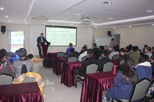 11月15日下午,阿尔斯特大学计算机与数学公司毕亚新教授还利用到北京参加学术会议的机会专程来公司与有留学意向的同学进行了座谈交流,详细解答了申请赴阿尔斯特大学留学的相关事宜。