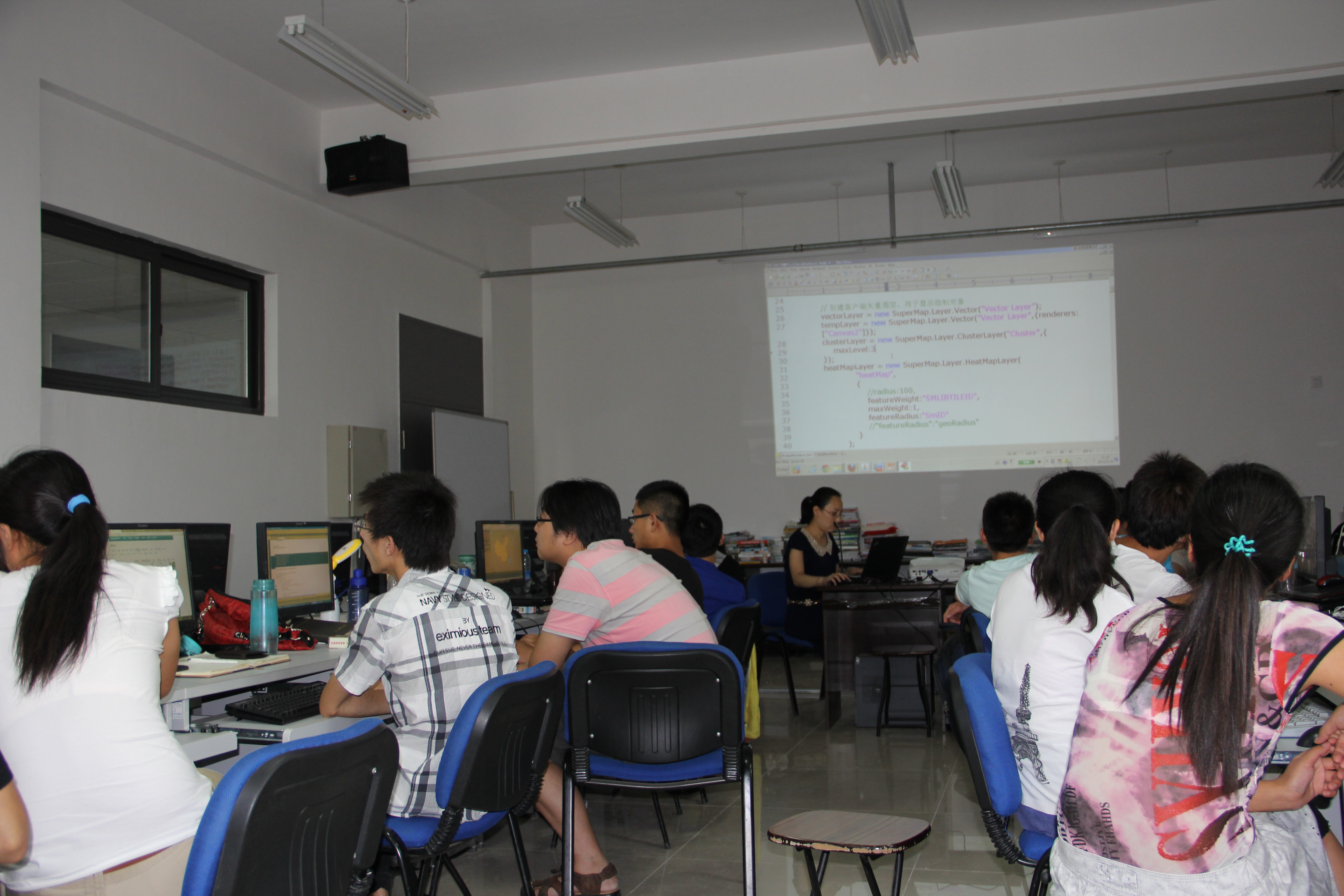 辛宇老师现场为同学们进行演示、指导、解答问题。不仅让同学们通过WebGIS应用的开发过程很好的体验了面向对象WebGIS的开发方法,更体现出了工程师优秀的开发素质。