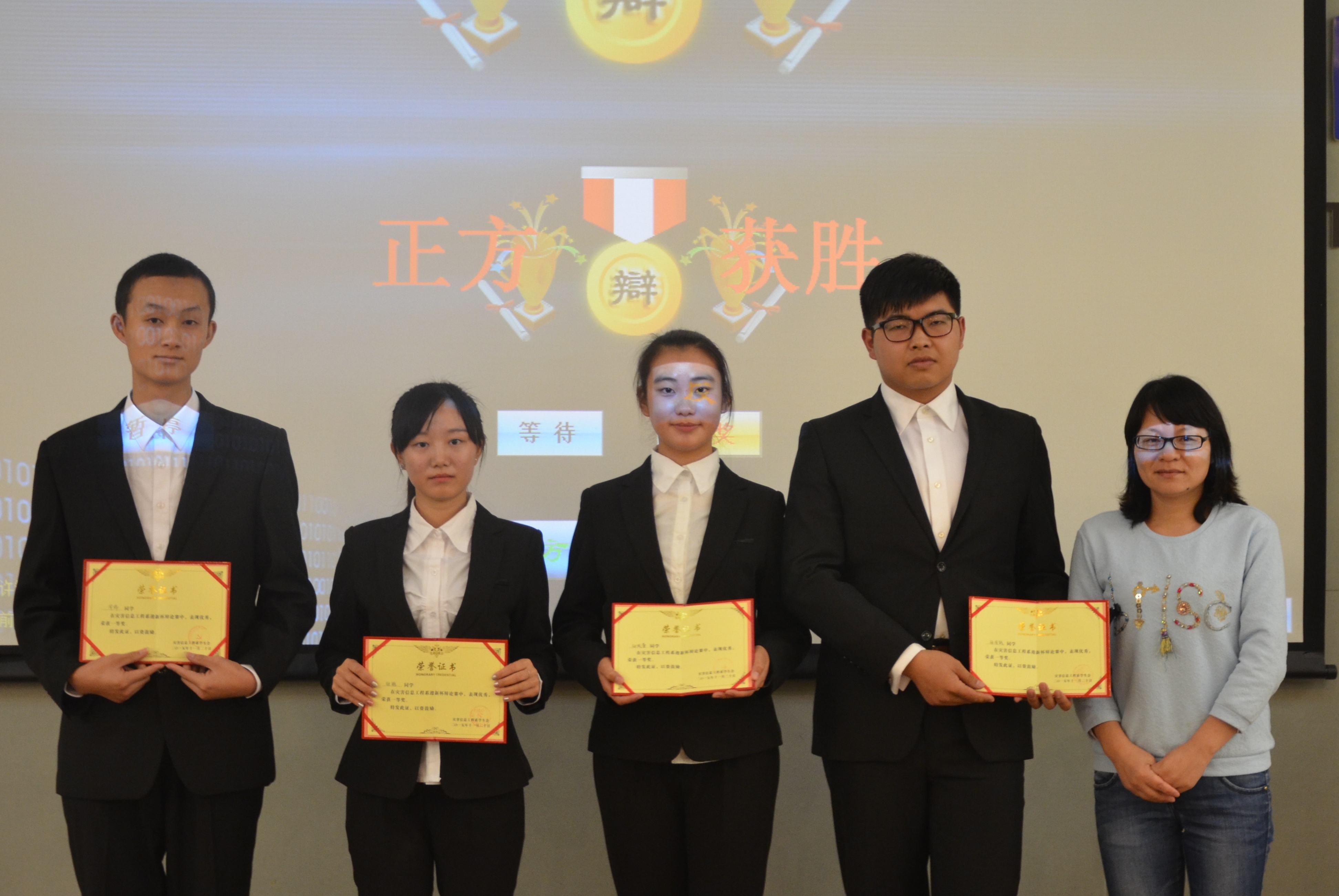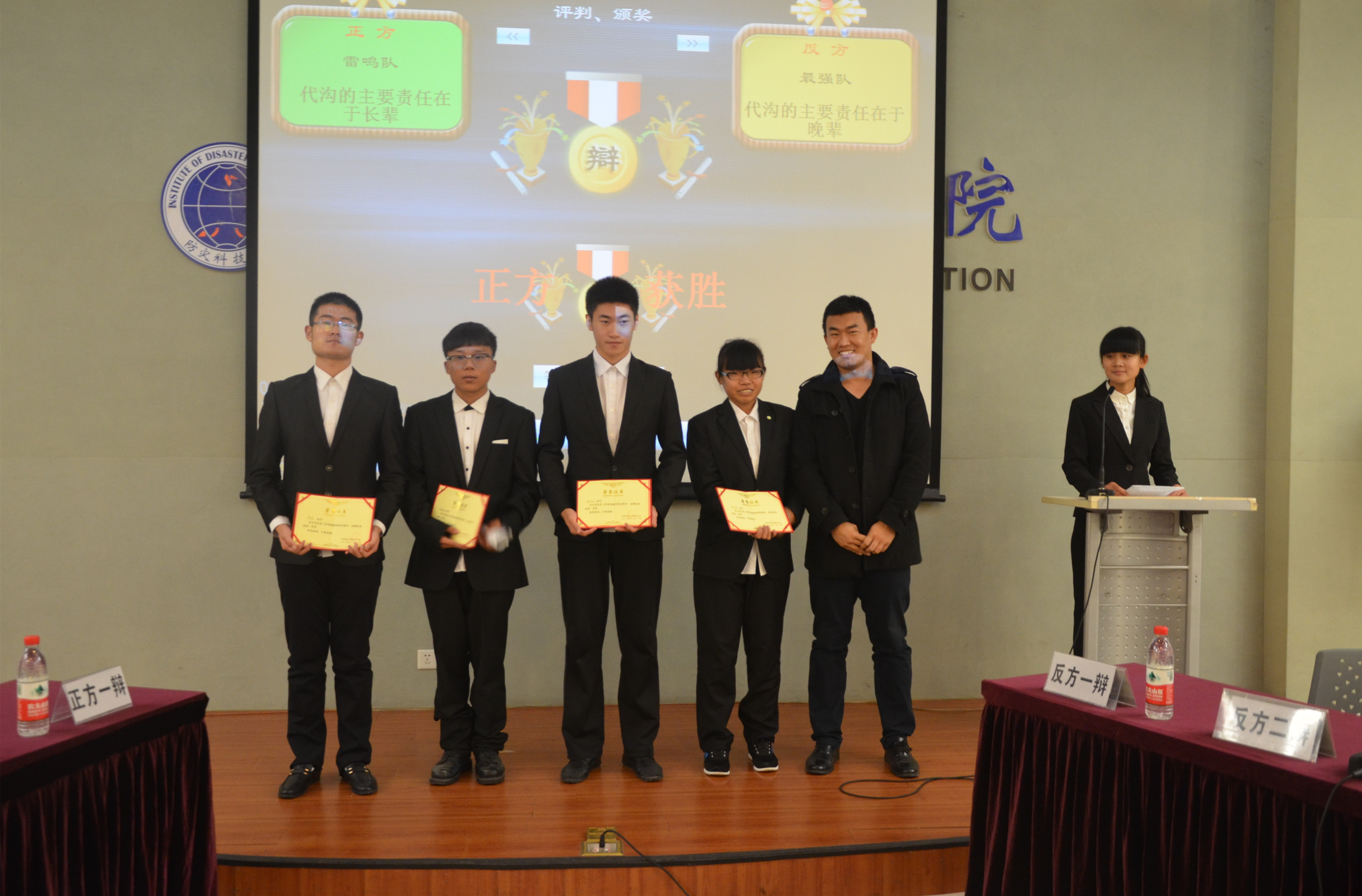 最终正方“雷鸣队”(1550411班)获得本次“新生杯”辩论赛总决赛冠军,反方“最强队”(1550422班)三辩郭丹旭为本场比赛最佳辩手。此次辩论赛在同学们热烈的掌声中圆满落幕。