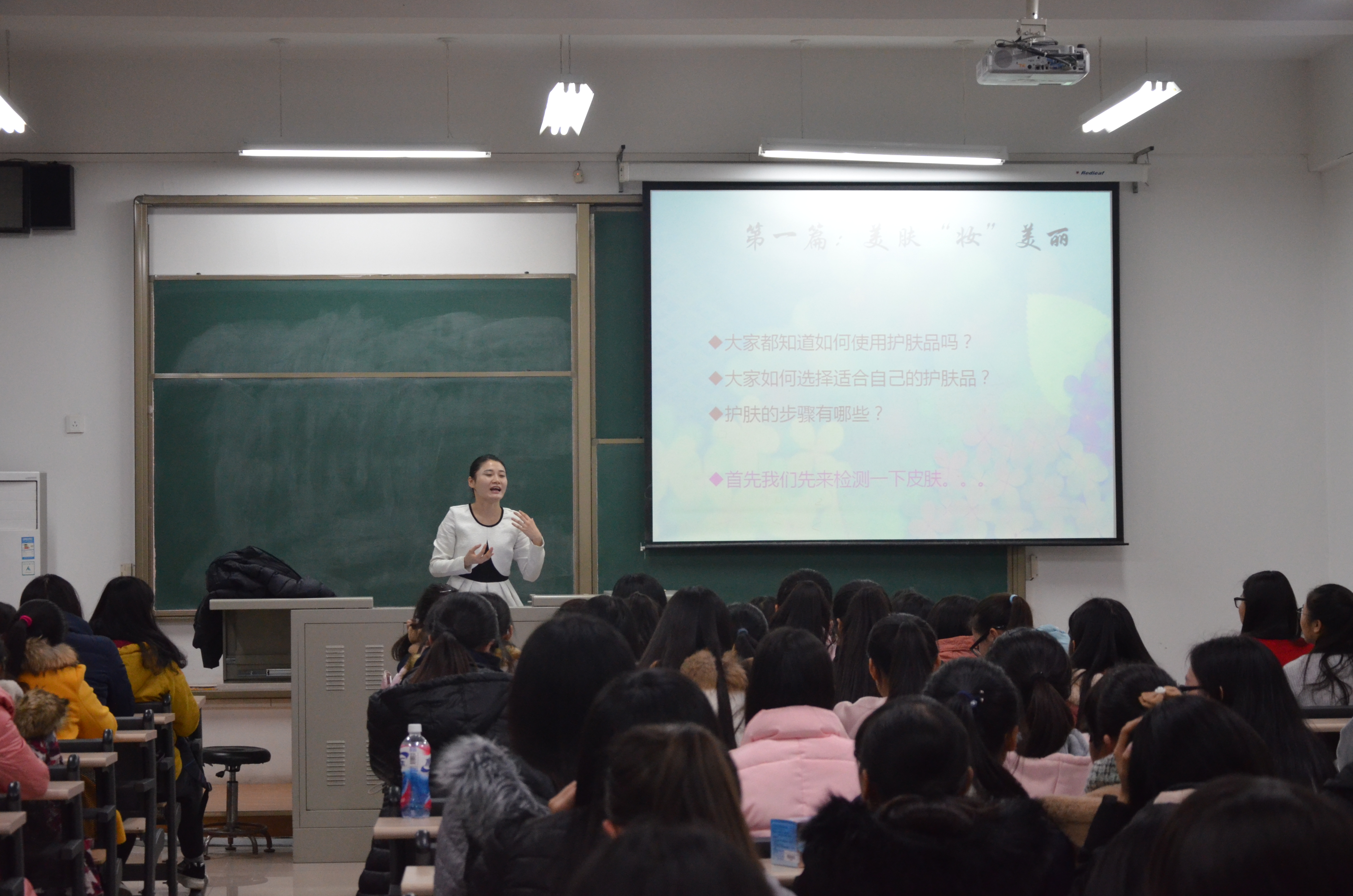为提高我系女生的整体形象,让每一位女生都展现出最美的风采。2015年12月2日,王爱玲书记邀请李翠婷老师为我系全体女生开展以“健康”(护肤与塑型)为主题的大型讲座。
