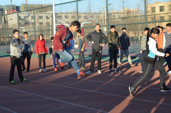 接着是跳大绳比赛,经过了一段时间的练习,各班的跳绳技艺都有了很大的进步。比赛前,各班都积极准备,老师也对同学们给予了鼓励,陪伴同学们训练。比赛中,各系之间竞争激烈,大家都竭尽全力,为系争光。比赛场面非常活跃,同学们既紧张又激动,绳子有条不紊的摇动着,观众也紧张的为他们加油喝彩。 也有同学不时被跳绳绊住,但立刻调整状态,继续比赛。比赛很快结束了,我系以一个班最高229个的好成绩取得了良好名次