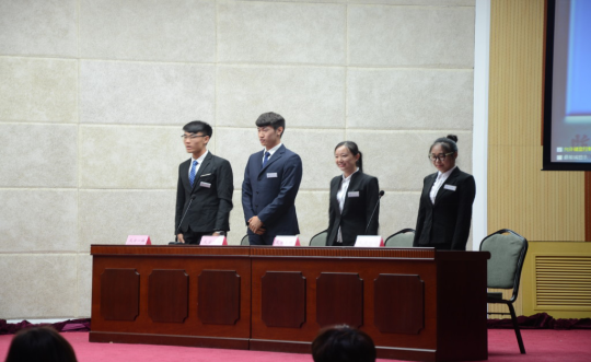 他们分别经过立论陈词、攻辩阶段、盘问环节,攻辩小结、自由辩论和总结陈词六个环节的激战和评委们公正的评判后,黄萍老师对本次辩论赛总决赛进行了点评。她指出,双方表现都很优秀,辩得很精彩,能较好把握己方的立场和辩论策略。在此之后,两队成员又进行了辩题互换和观众提问环节,使本次的辩论赛更丰富有趣。在整场的辩论过程中,各位辩手思路清楚,反应敏捷,充分展示了自己的才华,充分发挥了团体合作的精神。