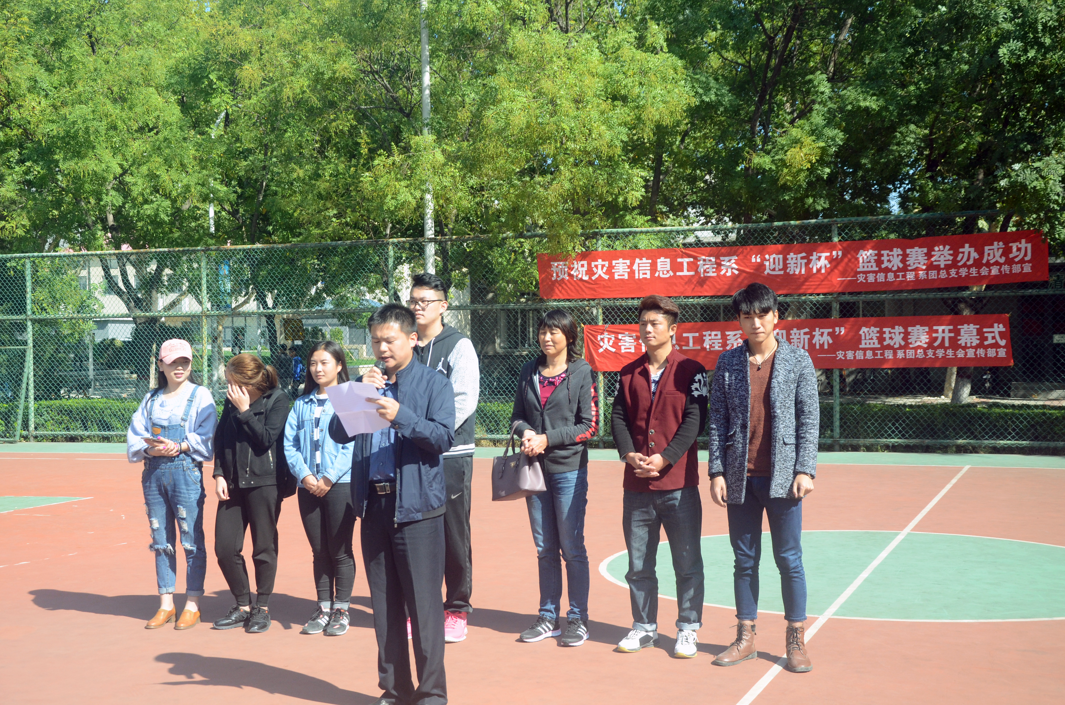 伴着淅淅沥沥的秋雨,十一黄金周悄然结束。十月八号中午,灾害信息工程系”迎新杯”篮球赛开幕式在南校篮球场召开。出席本次开幕式的有灾害信息工程系团总支书记欧阳群波老师、辅导员纪同娟老师、系员工会全体成员以及全体参赛运动员们。