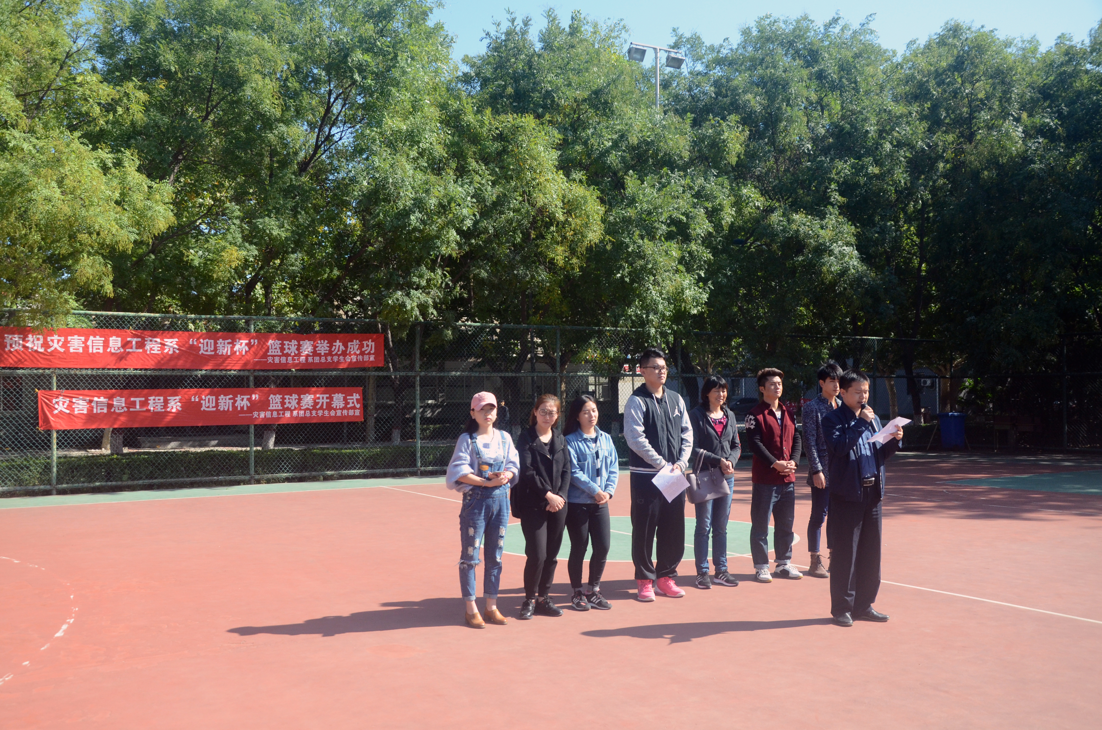 开幕式第三项,欧阳老师宣布新生杯篮球赛正式开始。