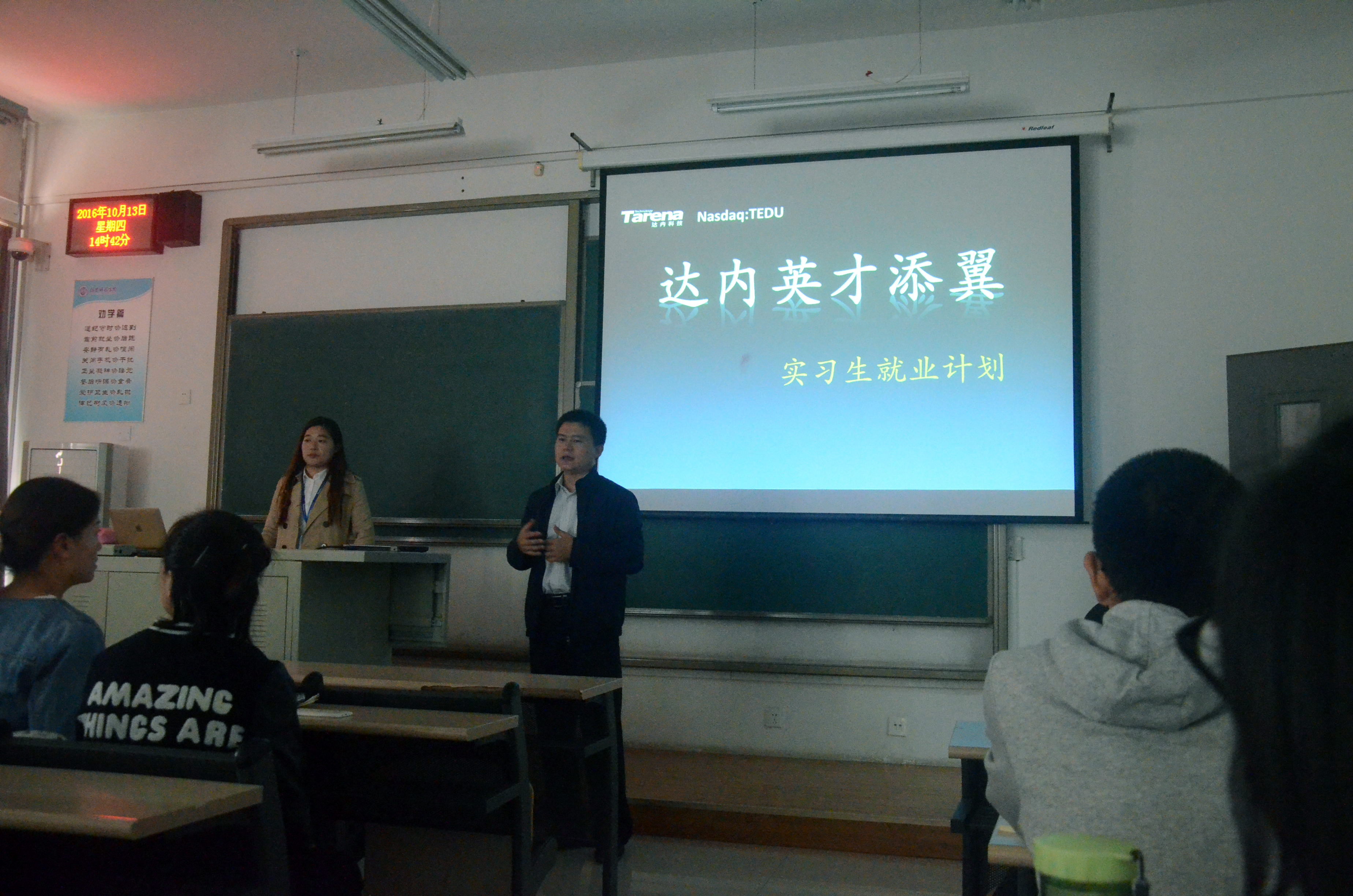 以“实习生就业计划”为主要内容的讲座正式开始。讲师以公司与达内公司的多年合作开讲,介绍达内教育,为我系员工提出了Java、大数据、UI等几大就业发展方向。
