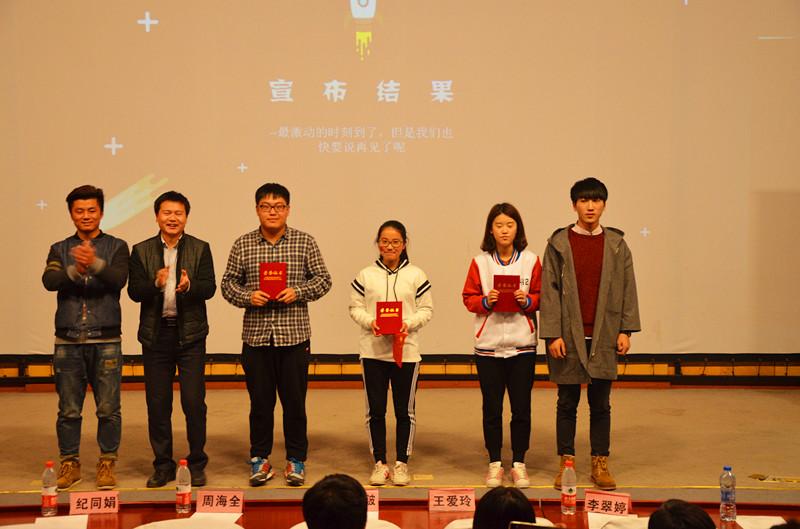 最后主持人宣布比赛结果,恭喜431班、442班、421班分别获得了第一名、第二名、第三名,由欧阳群波老师为获奖班级颁发荣誉证书。