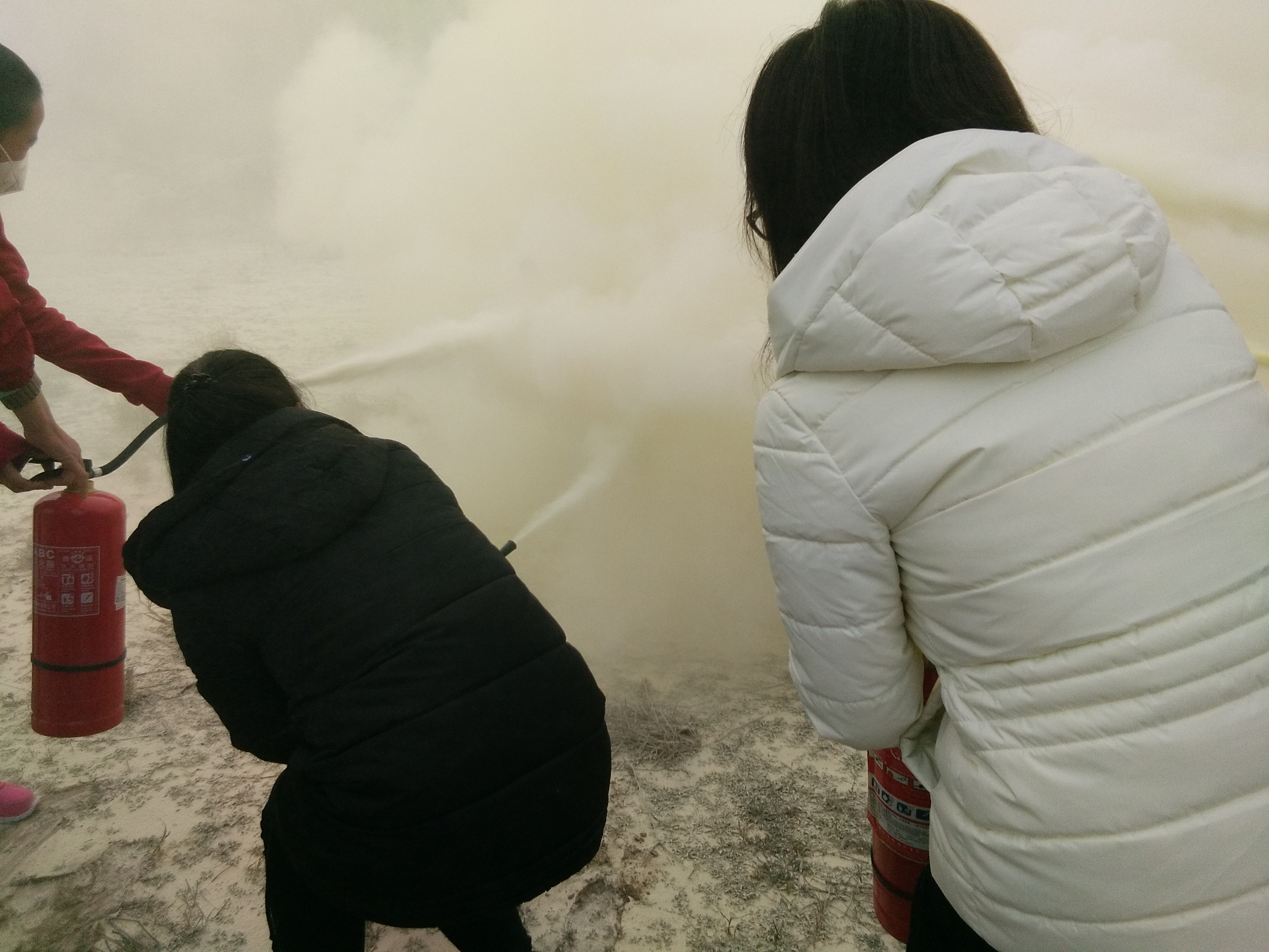 燃着的火冒的烟很大,很呛人,但大家还是拿着灭火器冲了上去。