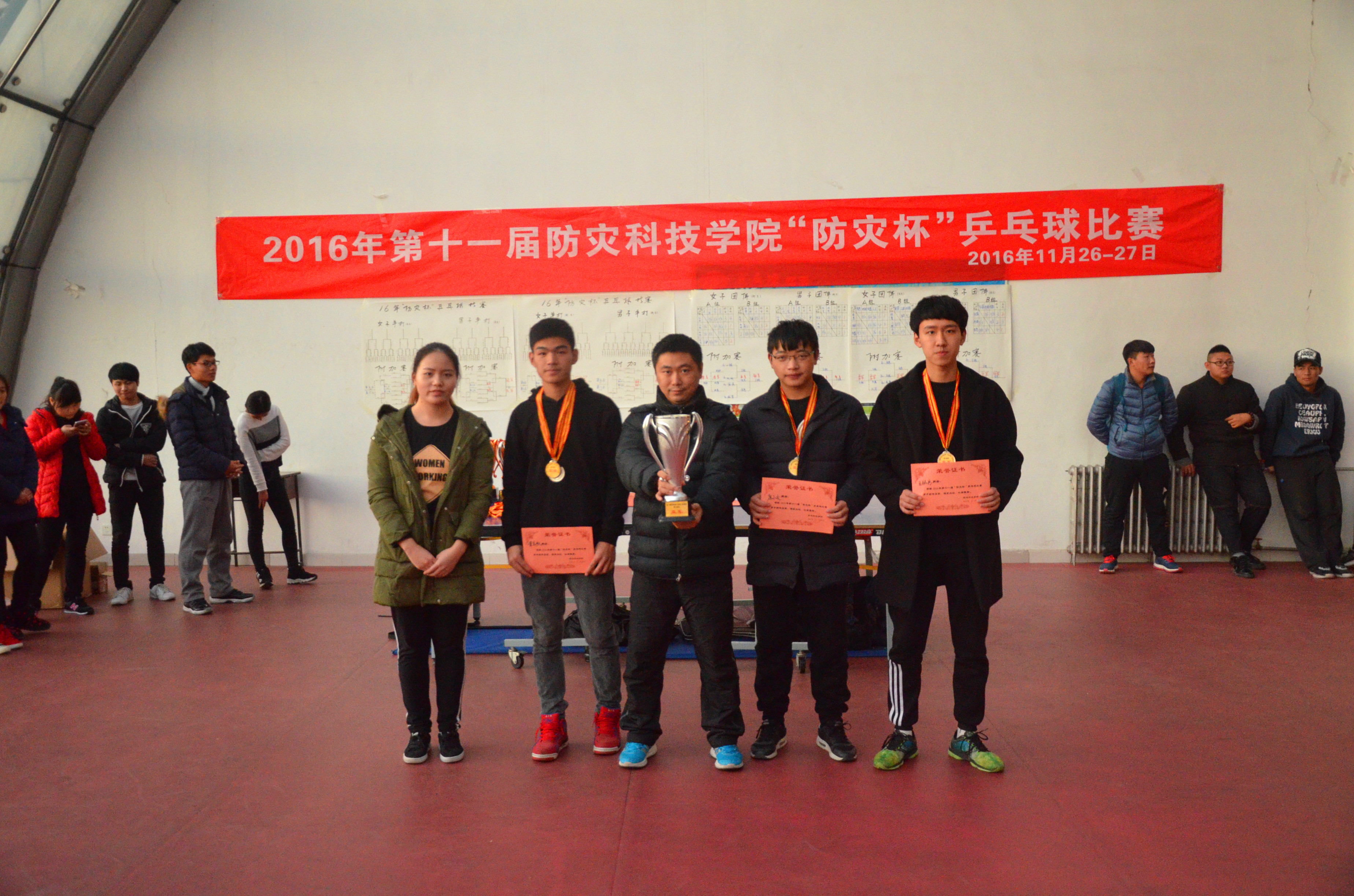 年第十一届太阳成集团tyc122ccvip"防灾杯"乒乓球比赛于2016年11月26-27日在南校体育馆举行。此次比赛由公司七个系代表队参赛,分为两个阶段进行。分别进行了新生老生的单打比赛和团体比赛。我系队员们更是以高超的乒乓球技艺和高尚的体育精神赢得了广泛好评。