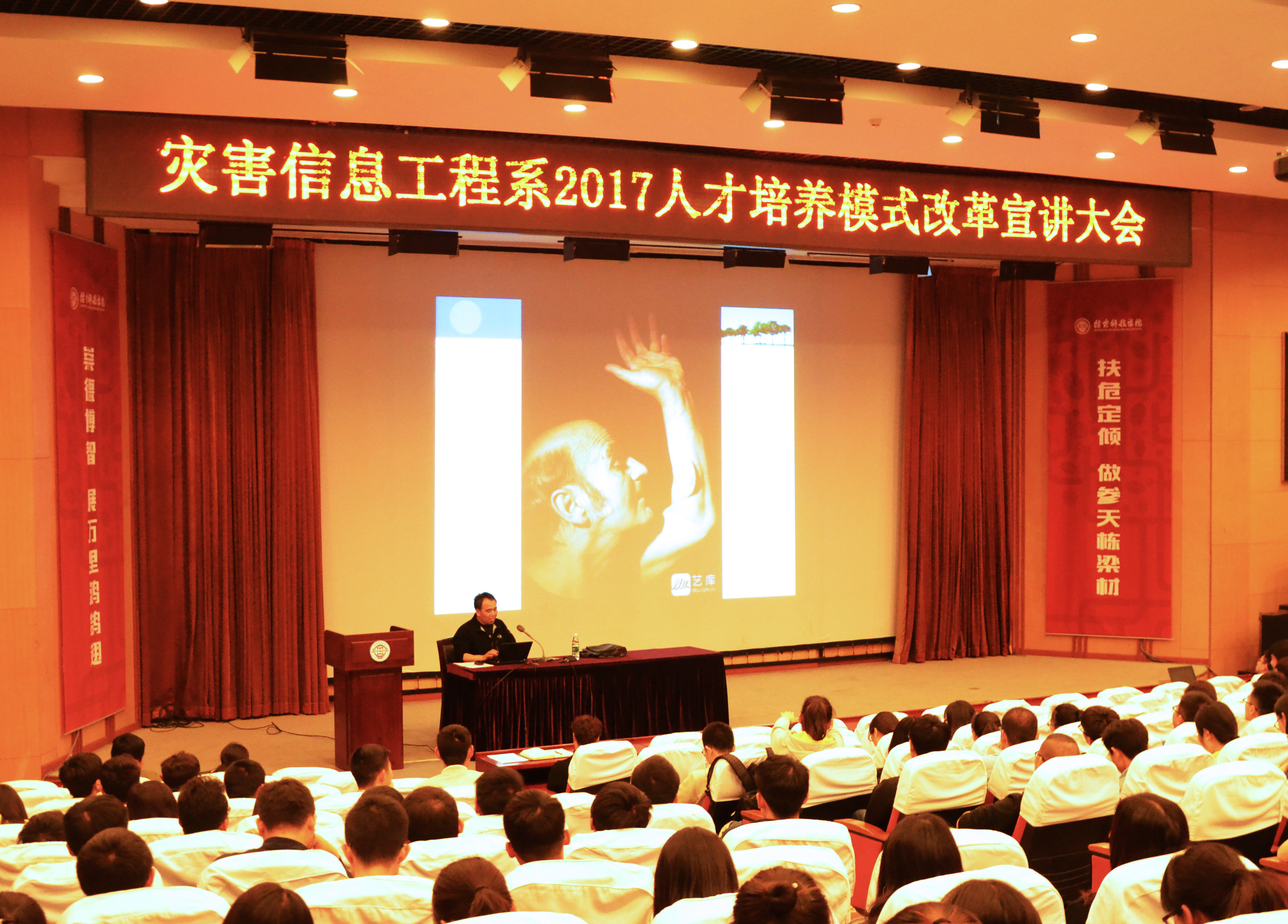 2017年4月24日,公司灾害信息工程系在南校图书馆报告厅举办了人才培养模式改革宣讲大会,达内、人通科技、京东翰林校企合作公司应邀来参加此次大会,大会由灾害信息工程系党总支书记王爱玲老师主持,2014级全级同学和13、15级部分同学聆听此次宣讲大会。