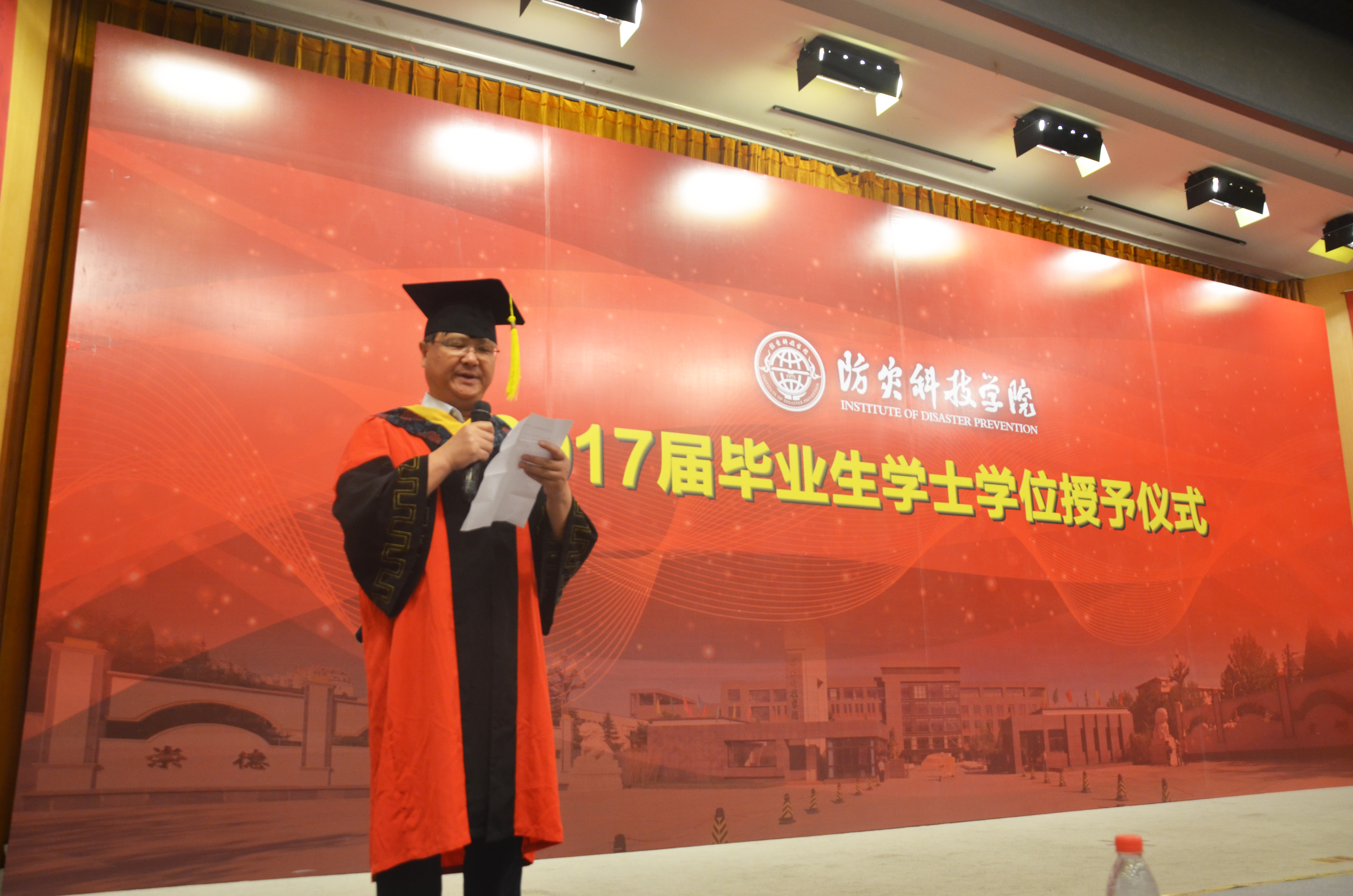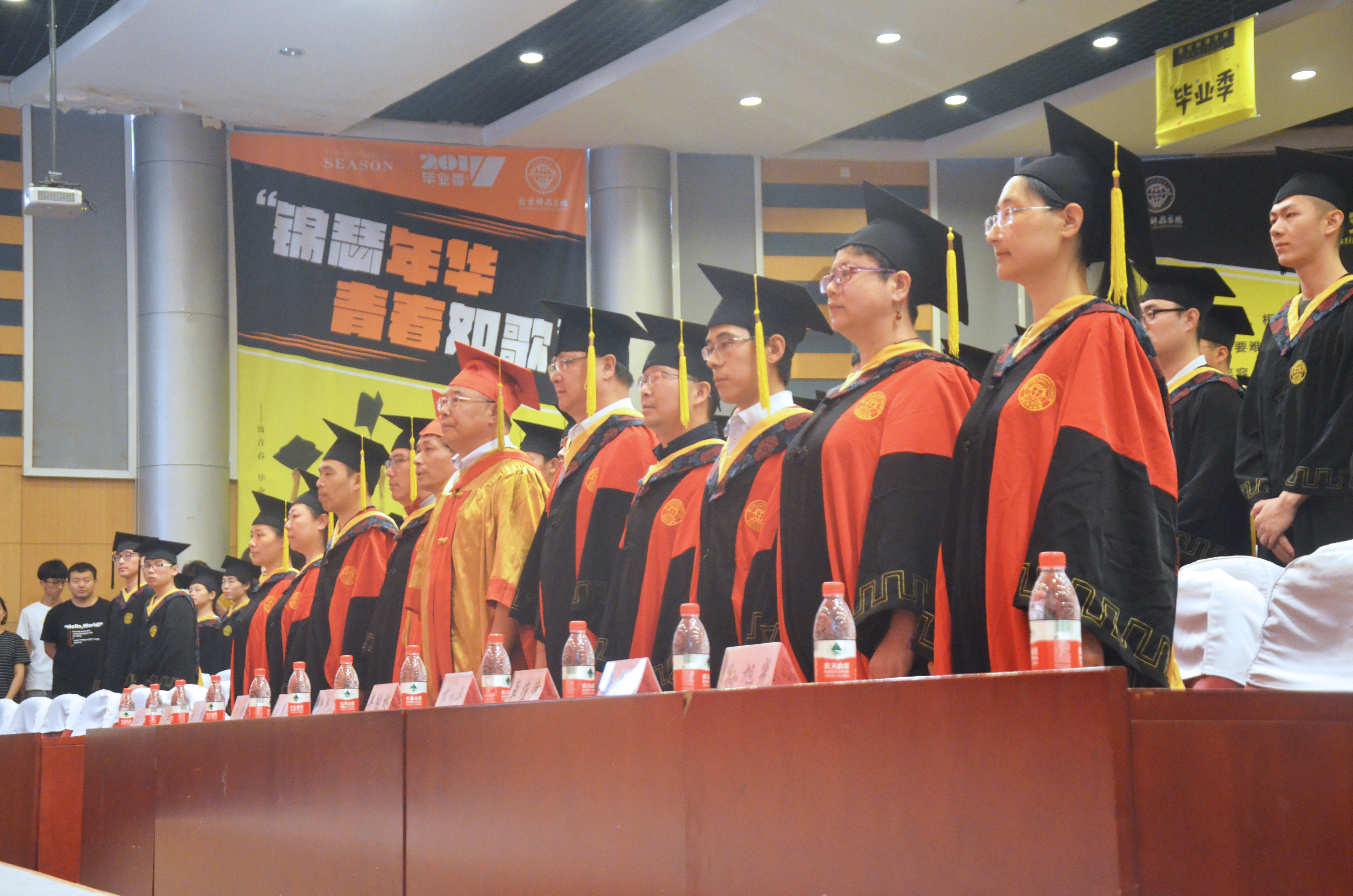 授业仪式以庄严的国歌为始,寄托着学长学姐们建设国家的美好愿望。随后,由学位委员会委员丰继林教授宣读《灾害信息工程系2017届本科毕业生学士学位授予决定》,授予曹悦等334名学长学姐本科毕业学士学位。紧接着,由学位委员会各委员为我系毕业生们举行拨穗仪式。