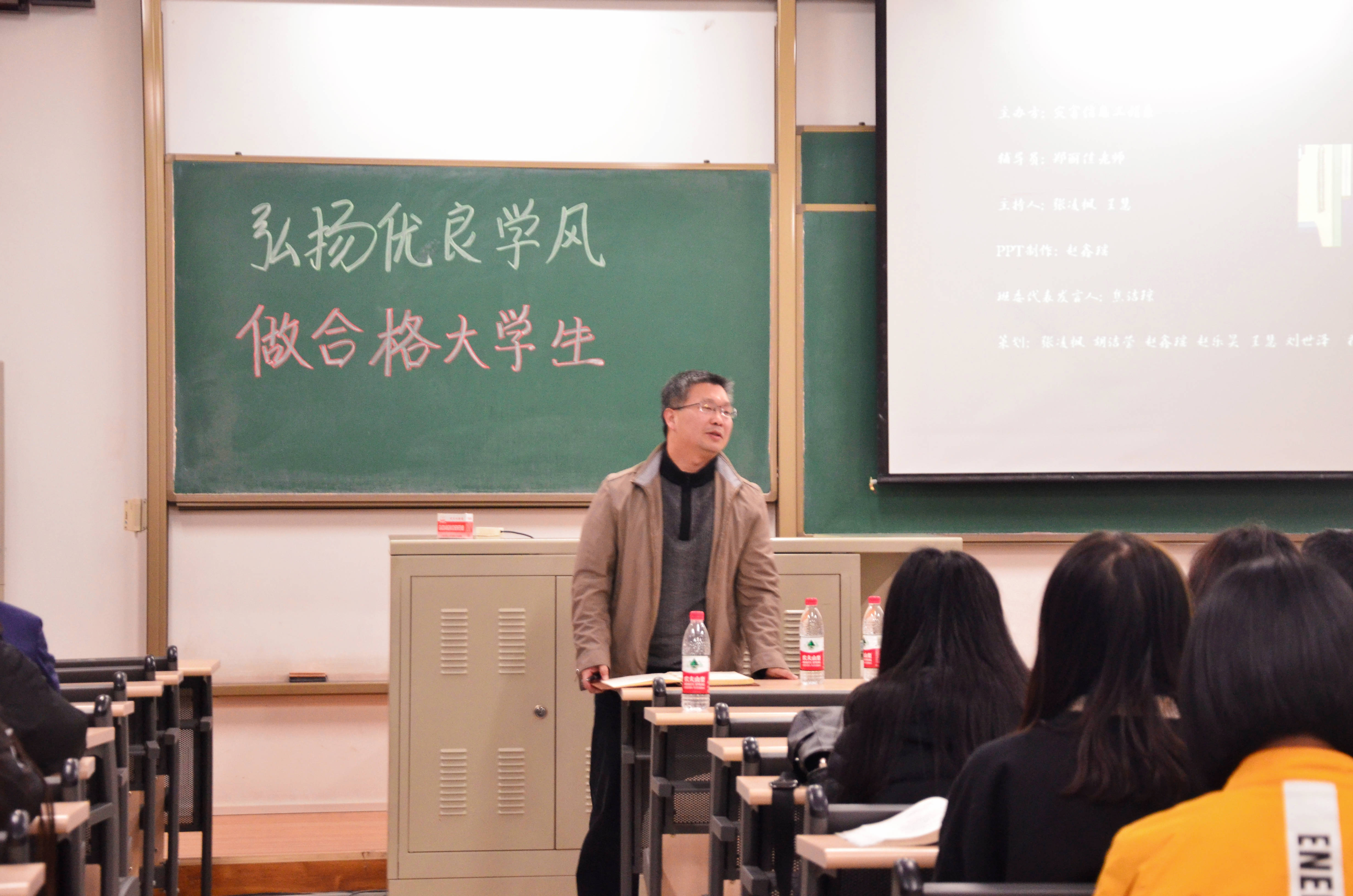 班会尾声,陶老师和辅导员郑丽佳老师等几位专业教师在不同方面向同学们提供了自己的建议。就像是同学们在班会中合唱的《真心英雄》那样,阳光、自信的面对未来的大学时光。