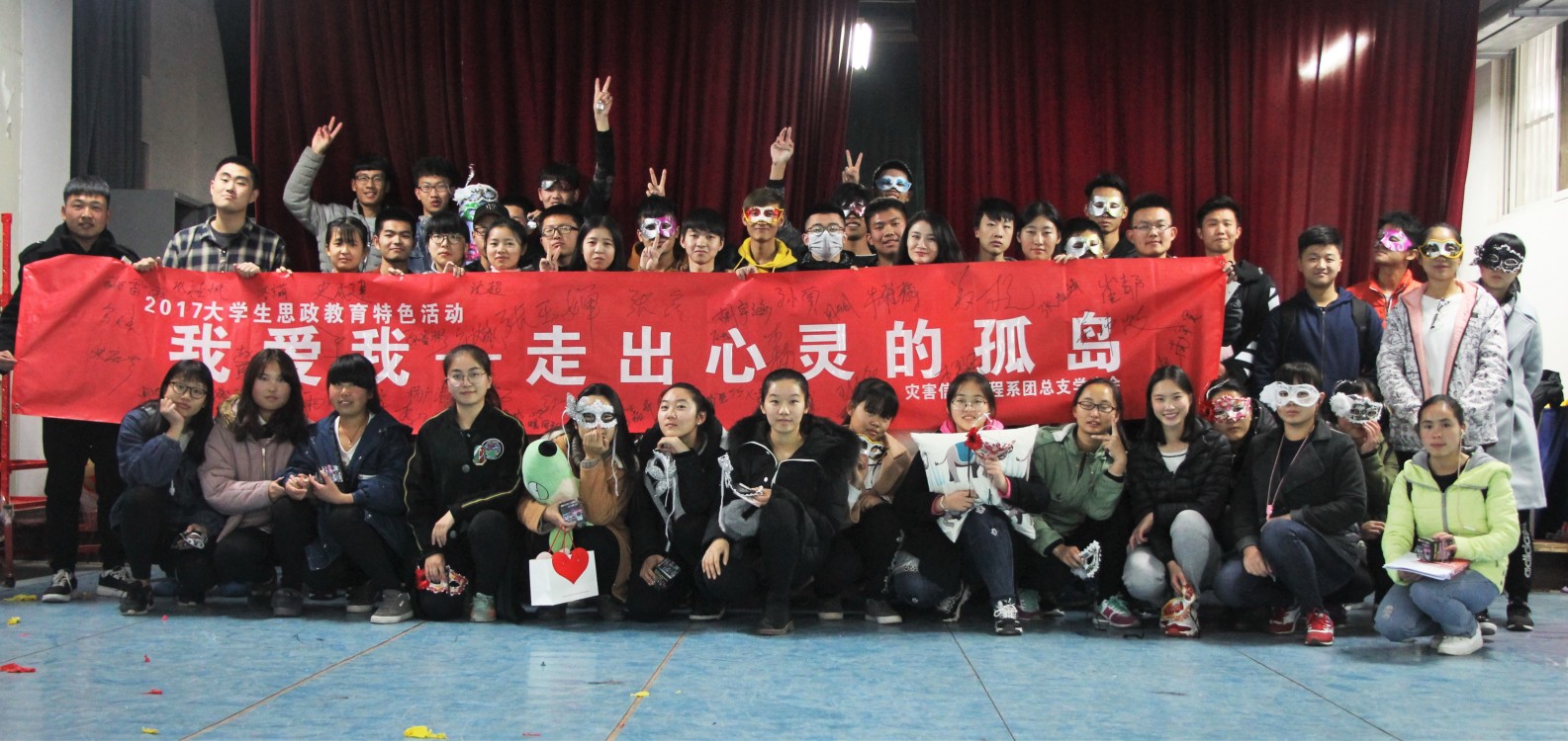 为了弘扬优良校风,帮助老员工正确认识自我,培养阳光开朗的性格,增强人际交往能力和环境适应能力,使同学们能够独立面对老员工活中的压力、困难、挫折和失败等情况,走出孤僻、抑郁、焦虑、自卑等孤岛的包围。2017年11月16日灾害信息工程系团总支员工会生活部于南校区体育馆举办了“我爱我-走出心灵的孤岛”主题活动。