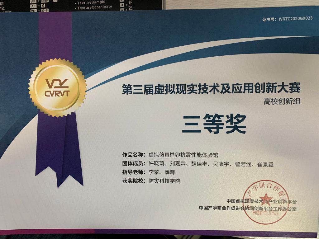 历经三个月的作品征集,近两个月的初赛、半决赛和决赛评审,第三届虚拟现实技术及应用创新大赛于12月6日圆满落幕。公司VR虚拟现实实验室3A小队(刘嘉森、许晓琦、吴啸宇、魏佳丰、崔景鑫、翟若寒)在比赛中获得全国三等奖。