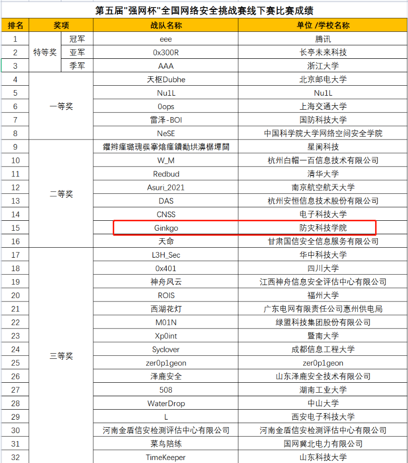 在公司信息工程公司丰继林经理带队,王小英和潘志安老师的指导下,来自信息安全实验室的Ginkgo战队从线上赛3156支战队20207名选手中脱颖而出,在总决赛中与腾讯、长亭未来科技、清华大学、浙江大学、北京邮电大学、四川大学、上海交通大学等参赛队伍同台竞技,激烈角逐获此佳绩。