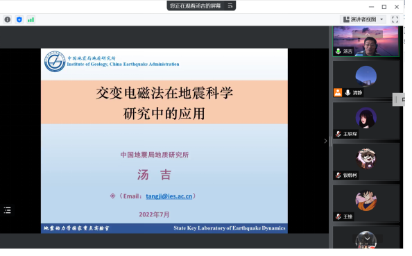 日前,中国地震局地质研究所汤吉研究员应邀为信息工程公司师生作“交变电磁法在地震科学研究中的应用”学术报告。报告会通过腾讯会议线上举行,公司部分教师和员工聆听报告。