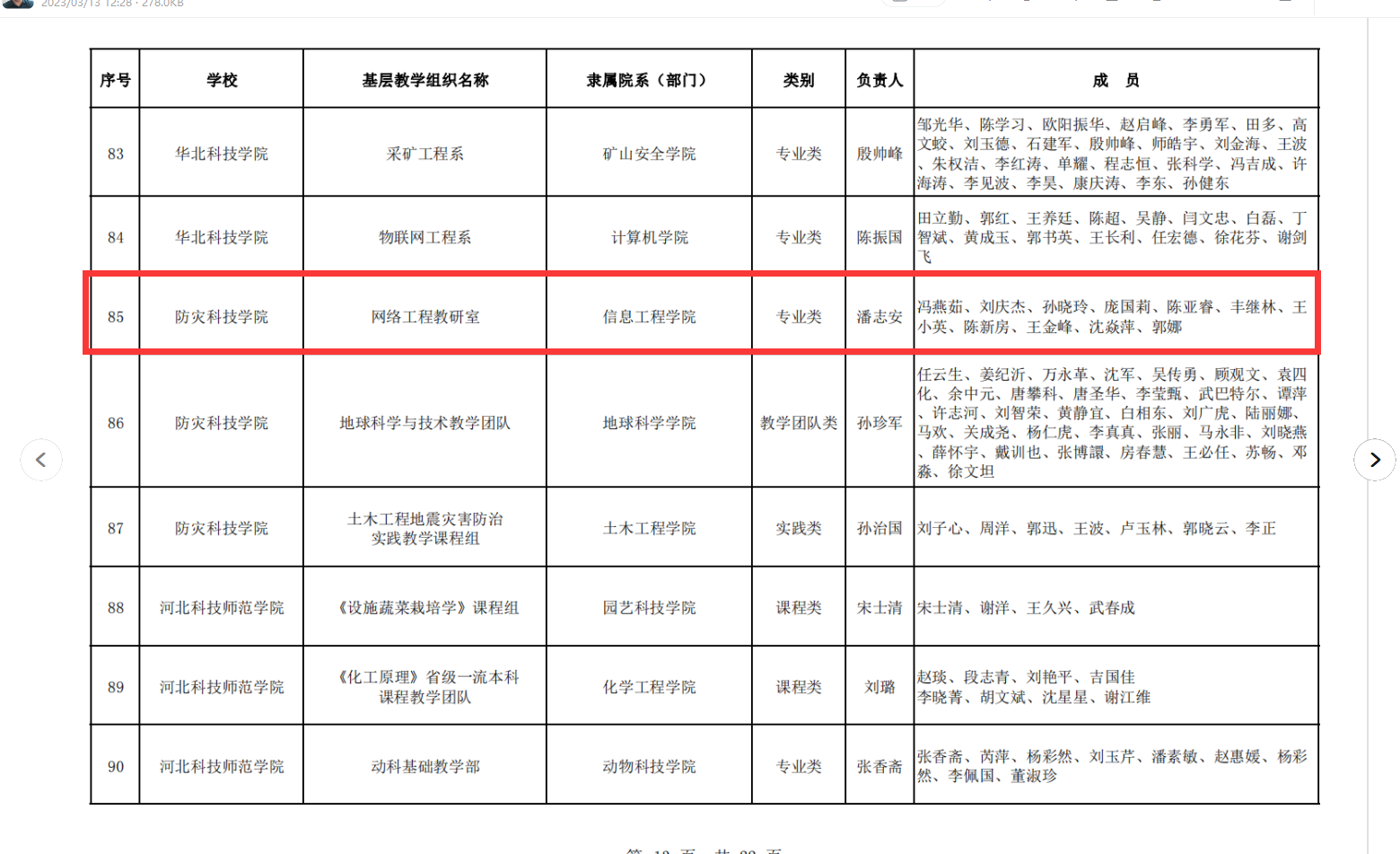 近日,公司收到河北省教育厅《关于公布2022年度河北省高等公司优秀和达标基层教学组织名单的通知》文件。其中公司的网络工程教研室荣获河北省优秀基层教学组织称号。这代表他们在人才培养、团队建设和教科研方面均取得了优异成绩,希望以后公司会涌现出更多的团队或个人能取得更大荣誉。