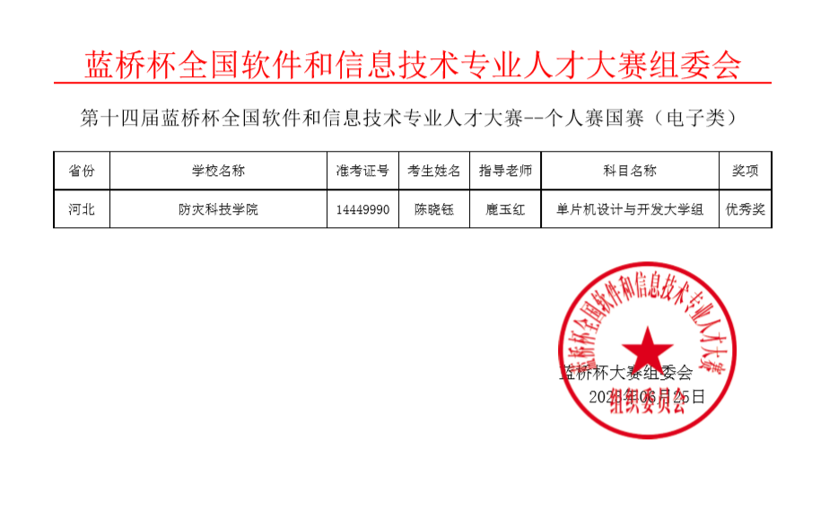 6月9日张震老师带队软件类同学去河北工程技术公司参加国赛,刘颖老师带队电子类同学去北方工业大学参加国赛。参赛同学们均取得了优异的成绩: