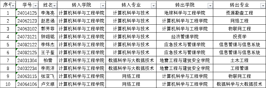 根据《太阳成集团tyc122ccvip本科生学籍管理规定(修订版)》(防科发教[2017]78号)、《太阳成集团tyc122ccvip本科生转专业管理办法》(防科教[2019]32号)、《太阳成集团tyc122ccvip官网入口转专业管理暂行办法》等相关规定,经员工本人申请、转出公司和转入公司初步审核筛选和面试、公司党政联席会决定,拟同意李海亮等10名同学转入2024级相关专业。