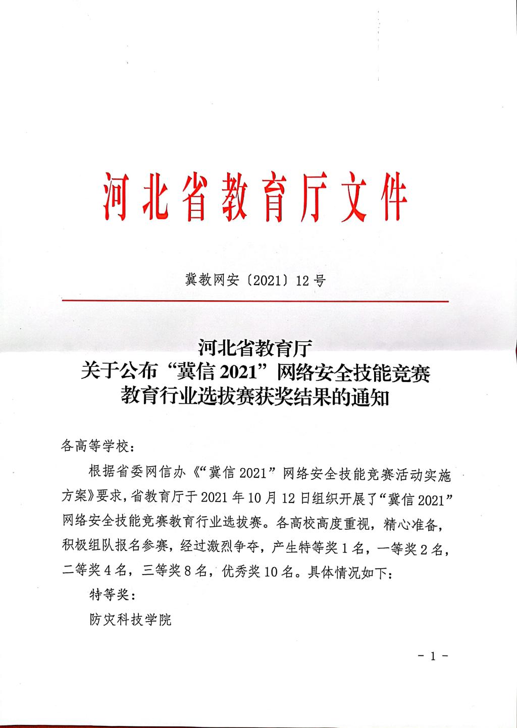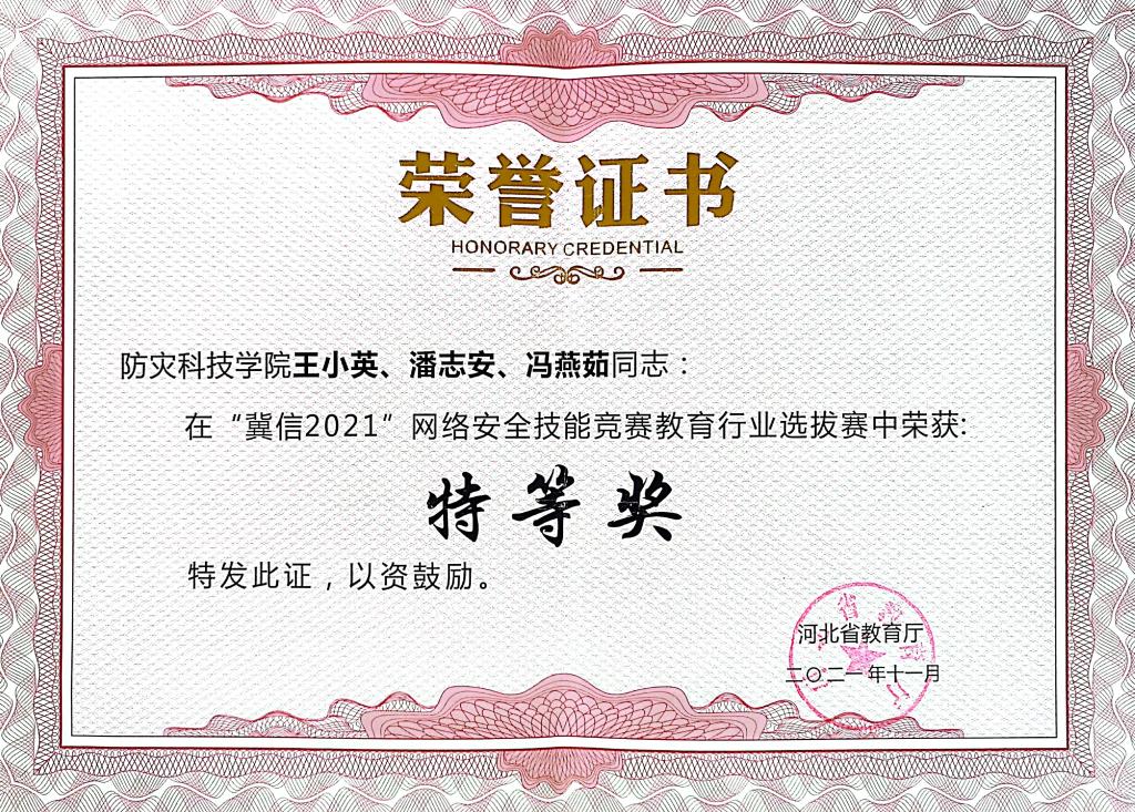 日前,河北省教育厅组织开展了“冀信2021”网络安全技能竞赛,经过三个小时激烈角逐,公司信息工程公司王小英、潘志安、冯燕茹三位教师组成的代表队脱颖而出,取得第1名的好成绩,荣获特等奖。全省共有河北工业大学、燕山大学、河北大学等35个高校的教师组队参加比赛。