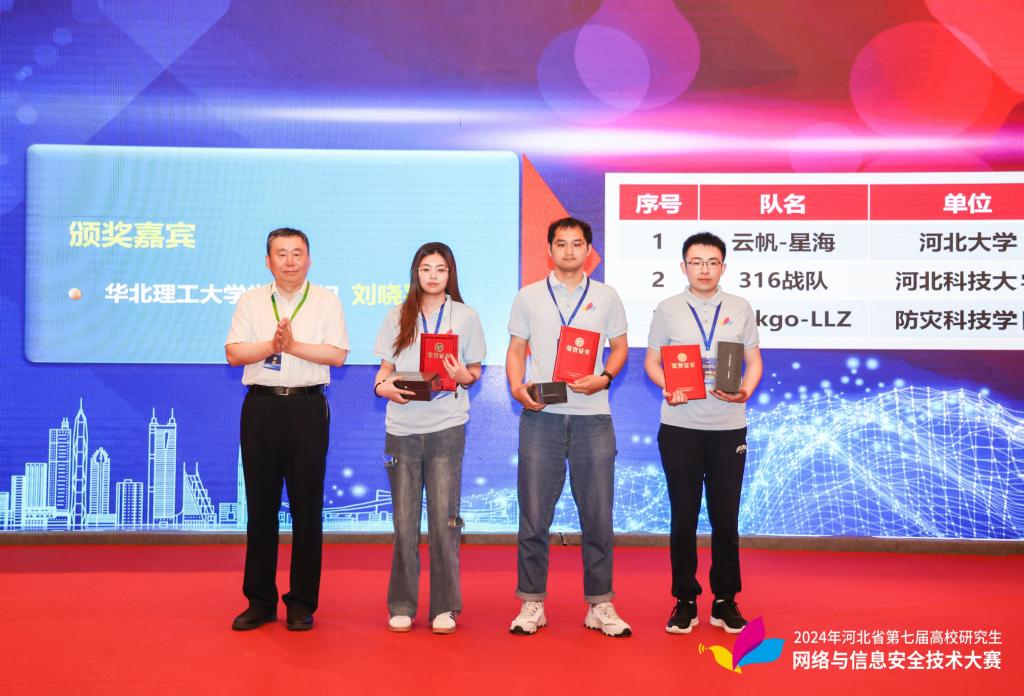 本次大赛由河北省教育厅主办,华北理工大学承办,中共唐山市委网络安全和信息化委员会办公室、河北省数据科学与应用重点实验室、杭州安恒信息技术股份有限公司协办,共有来自河北省17所高校41支参赛队报名参赛,经过检测和修复两个比赛阶段的激烈角逐,共评审出一等奖3支队伍,二等奖8支队伍。