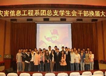 灾害信息工程系团总支员工会干部换届大会于2013年9月26日在图书馆报告厅隆重召开。系团总支书记欧阳群波、全体辅导员、新老员工会干部及全系大一新生欢聚一堂,共同见证了这一时刻。