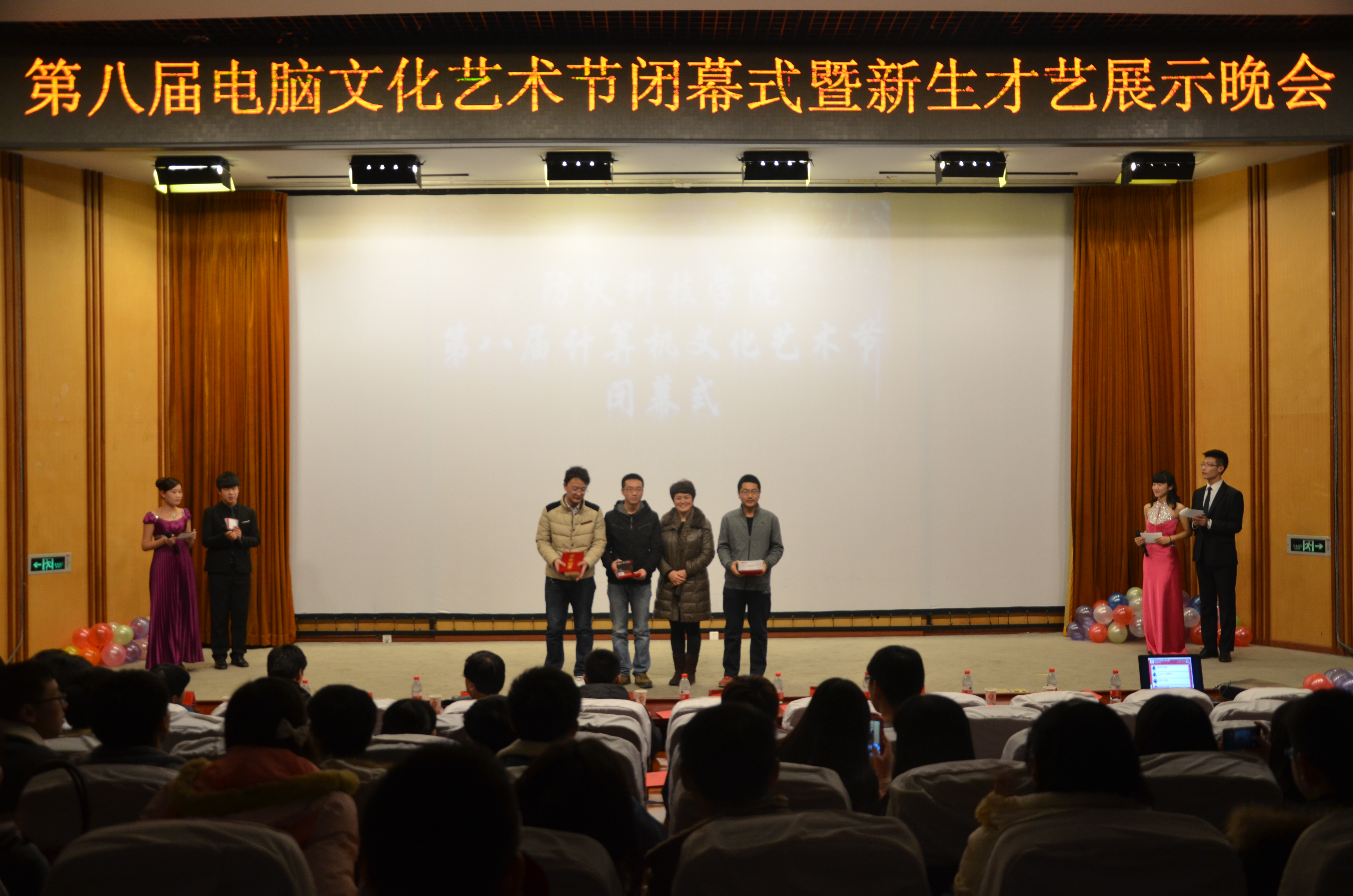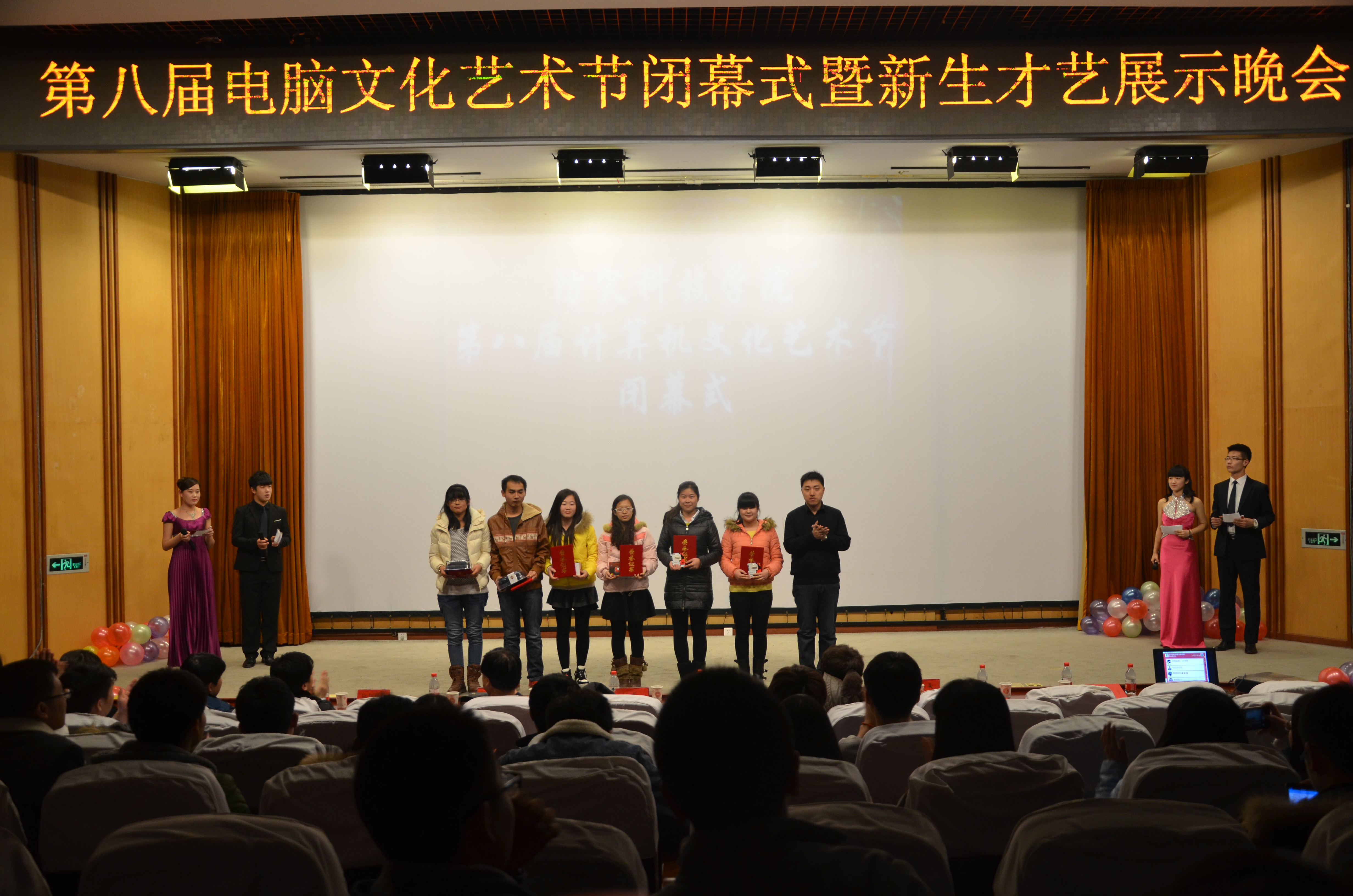 2014年12月27日晚,我系第八届电脑文化艺术节闭幕式暨新生才艺展示在主校区图书馆报告厅隆重举行。出席本次晚会的有院团委张振、党总支书记王爱玲、团总支书记欧阳群波、系主任丰继林等多位老师。