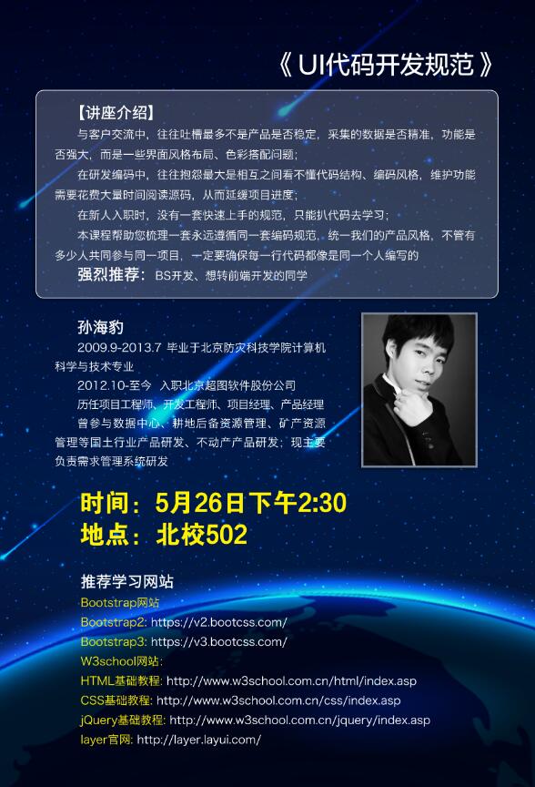 关于我系2009届毕业生孙海豹同学的讲座通知