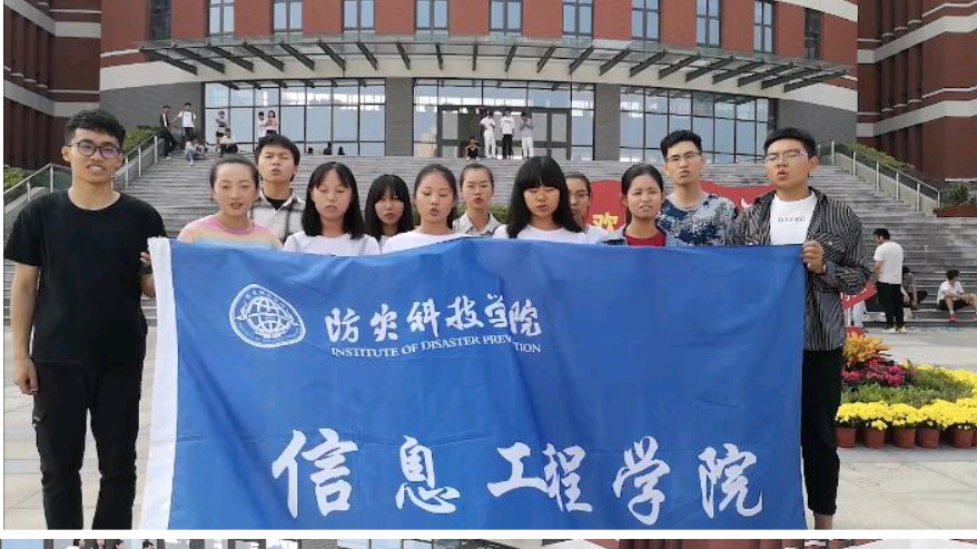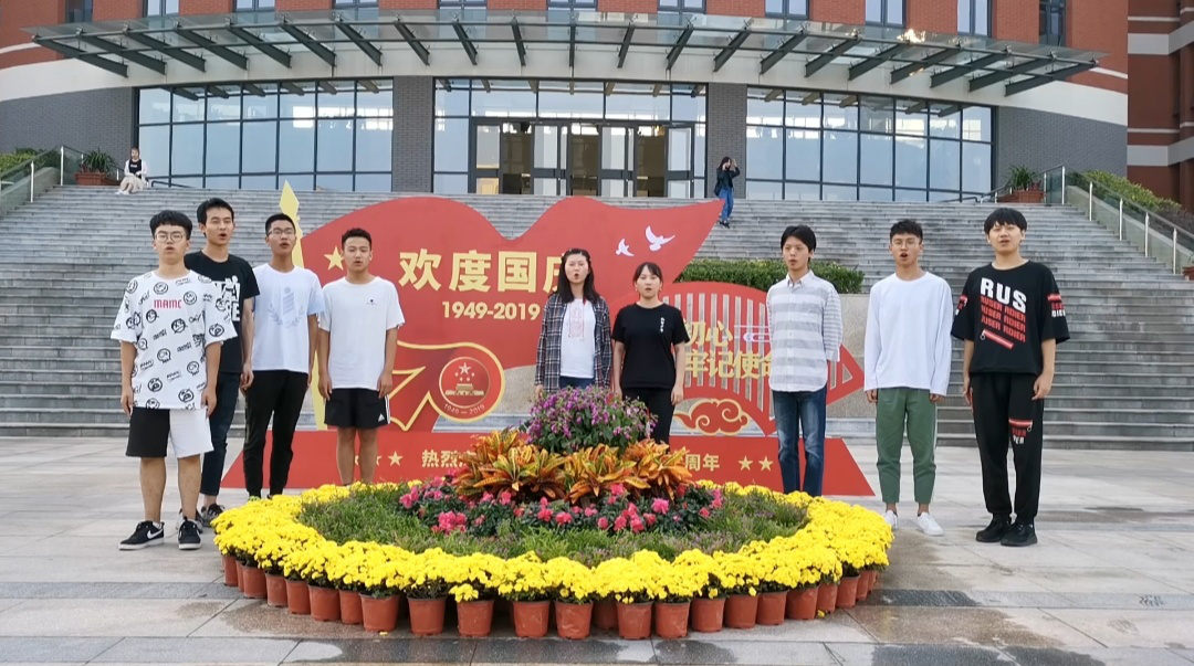 第二模块主要是大二同学的快闪活动。快闪活动以专业为单位,在不同的地方以不同的方式告白祖国。其中,物联网专业的同学在操场与食堂对祖国进行表白,从深情的话语中我们可以窥见同学们对祖国诚挚的热爱。而计算机科学与技术和网络工程的同学则在天仪楼前放声高歌,嘹亮的歌声里充满了对祖国的美好祝愿。