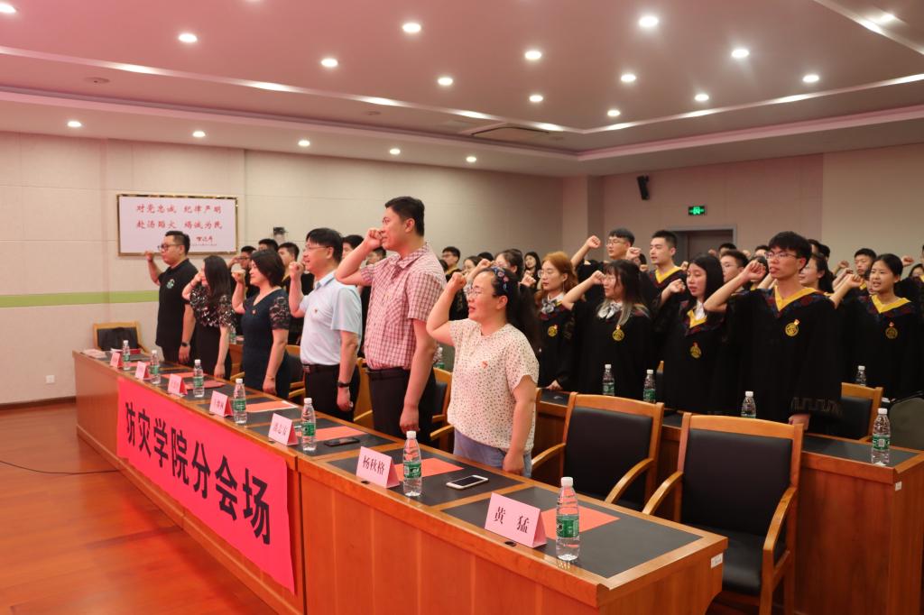表彰仪式中,党总支副书记李翠婷、员工党支部书记胡秀峰老师为12位优秀毕业生党员颁发证书及奖品并带领毕业生党员重温入党誓词。