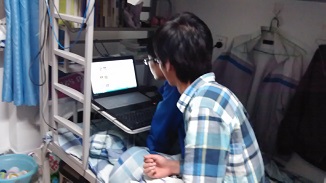 这是个大二计算机科学与技术专业的宿舍,宿舍干净整洁、没有违规电器。宿舍成员对专业课的学习上表示有些困难,走访的党员细心讲解,鼓励他们刻苦学习,只要想学一定可以学好。