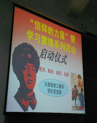今年是雷锋同志去世50周年,这50多年里,雷锋精神激励鼓舞了一代又一代的青少年不断进步,茁壮成才。为进一步弘扬雷锋同志的精神,我系员工党支部于3月16日晚举行了“信仰的力量”暨学习雷锋精神系列活动启动仪式,当晚系员工党支部书记赵会朋老师携全系员工党员、预备党员及部分重点培养对象共计110人参加了启动仪式。